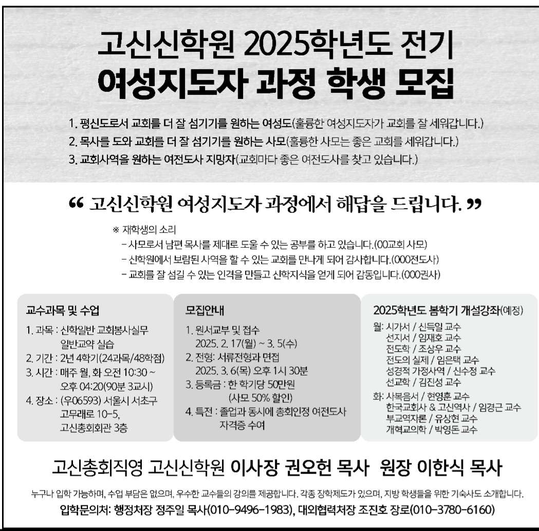 » 2025학년도 전기 고신신학원 여성지도자과정 신입생 모집 file kosin 2024.08.13 3001