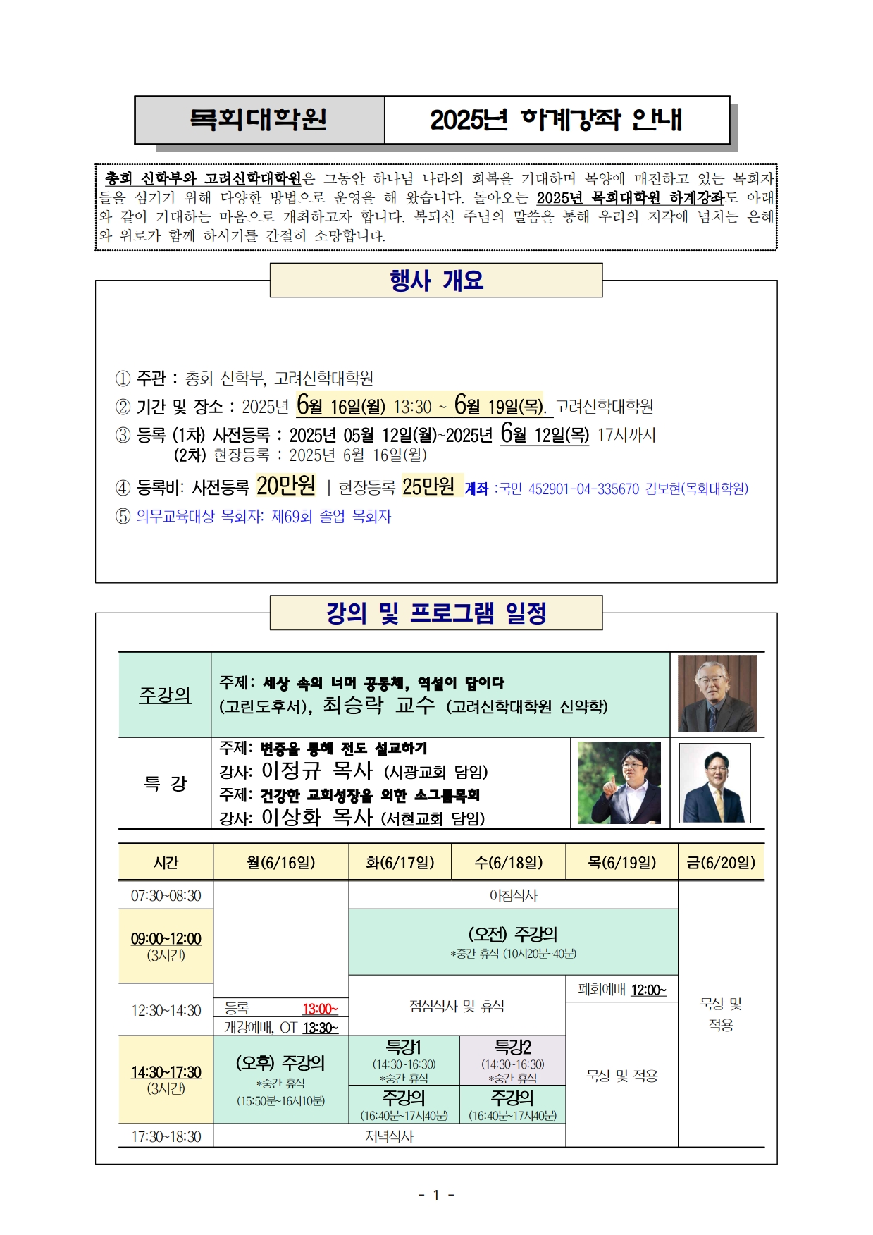 하계 목회대학원 안내