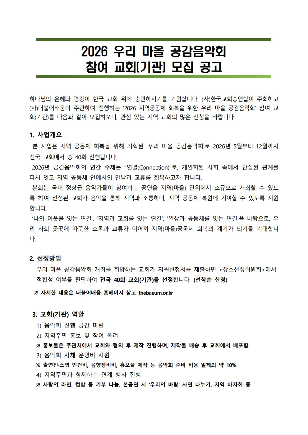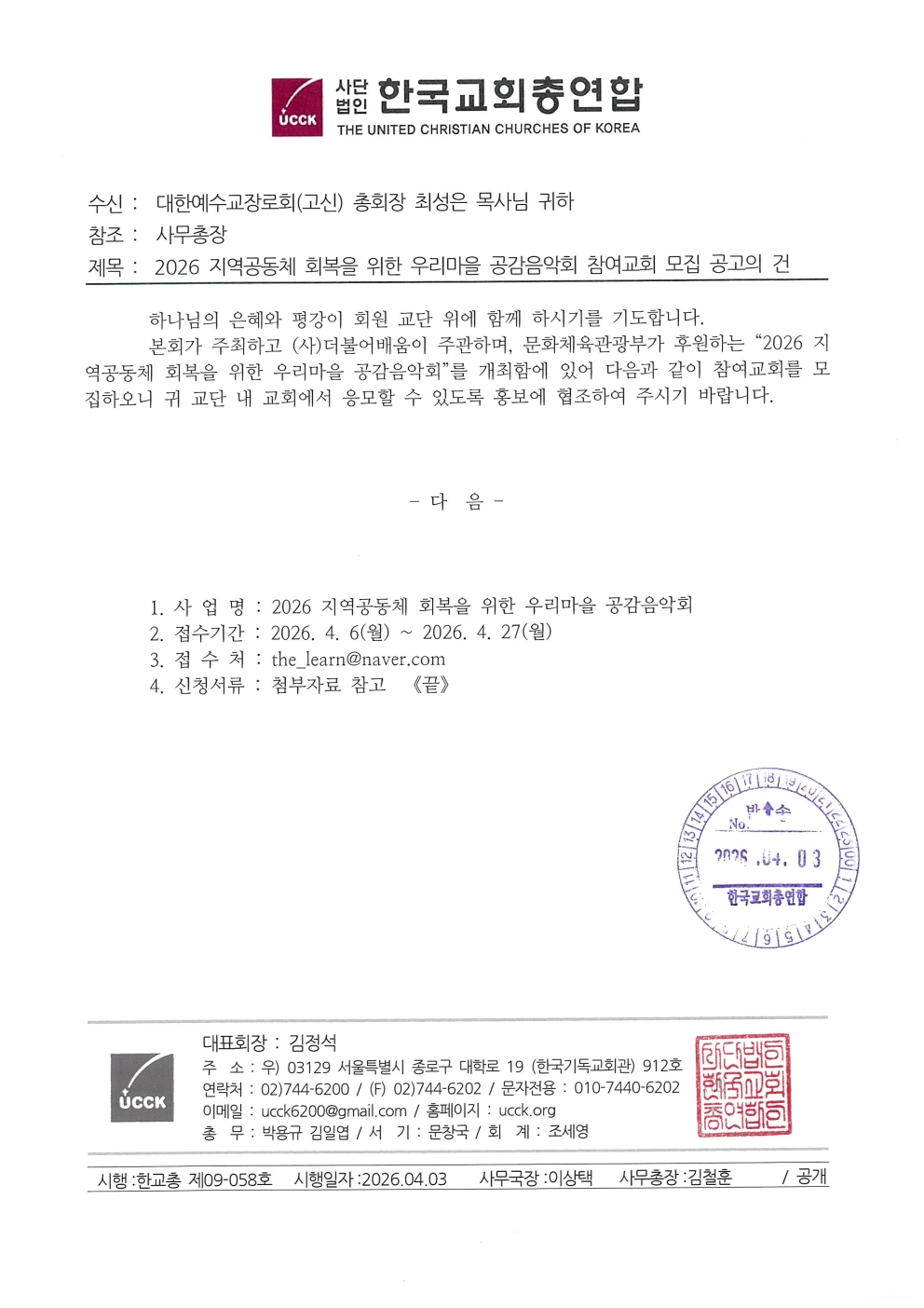 » [한교총]2026 지역공동체 회복을 위한 우리마을 공감음악회 참여교회 모집공고 file kosin 2026.04.06 867