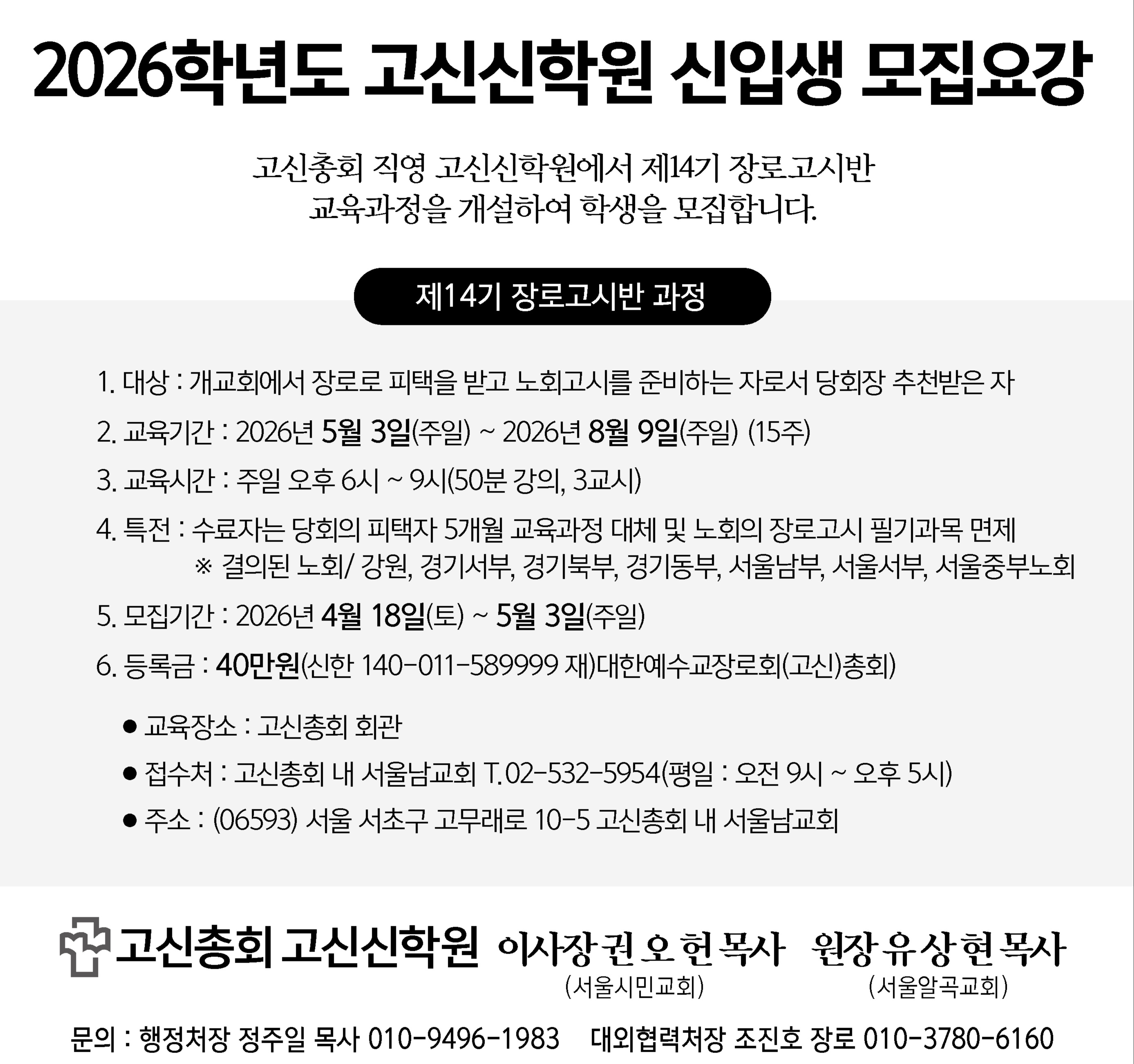 » 2026학년도 고신신학원 신입생 모집요강 장로고시반 과정 newfile kosin 2026.04.15 25