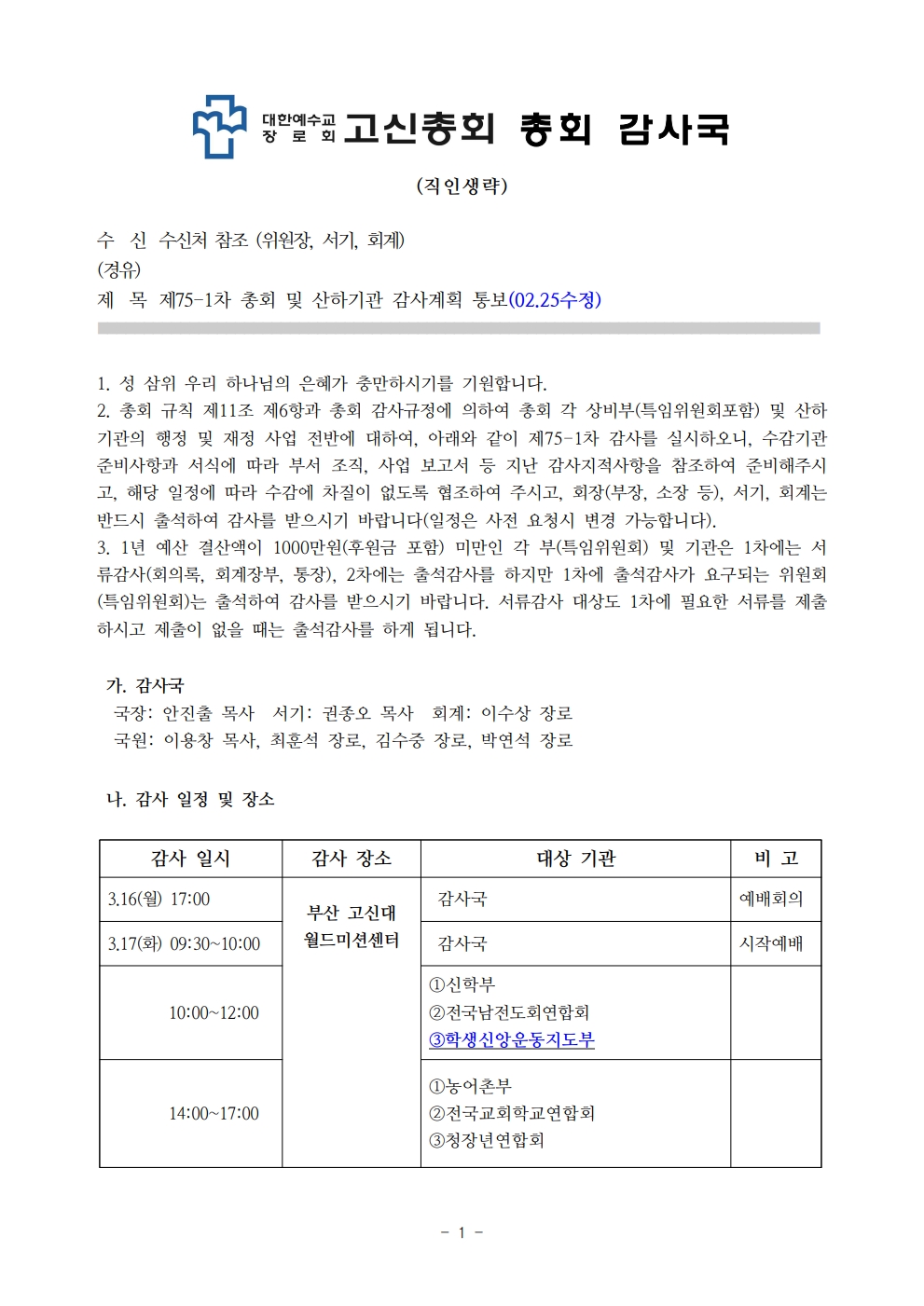 | 공지 | 2026년 총회(제76회) 및 정기노회 일정 안내 | kosin | 2025.08.21 | 8920 |
